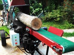 Sekačko-cepkačka mašina opremljena je trakastim transporterom dužine 3,2 m koji može direktno transportovati prerađeno drvo do prikolice. Maksimalna visina unošenja drveta putem transportera je 2 m.
